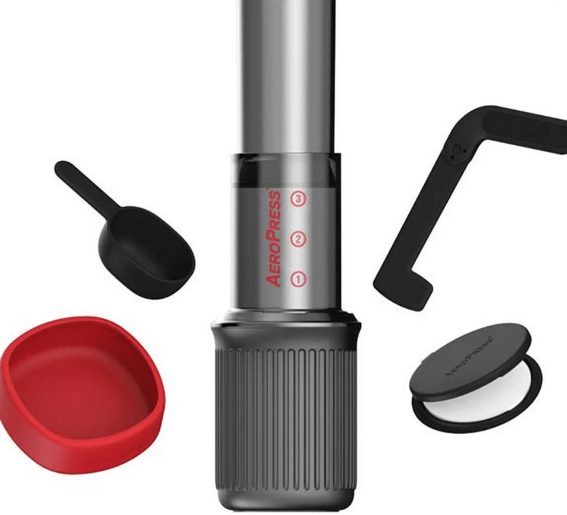 Alles lässt sich perfekt im Becher verstauen und du verlierst dank Deckel nichts. Es gibt die beiden Presselemente mit Dichtung, einen klappbaren Rührstab, einen Kaffeelöffel (ca.14 g Bohnen), das Filterelement, den Becher und 100 Papierfilter sowie eine Transportbox für 15-20 Papierfilter. Mit dabei sind 100 Einweg-Papierfilter, die du dann nachkaufen kannst.