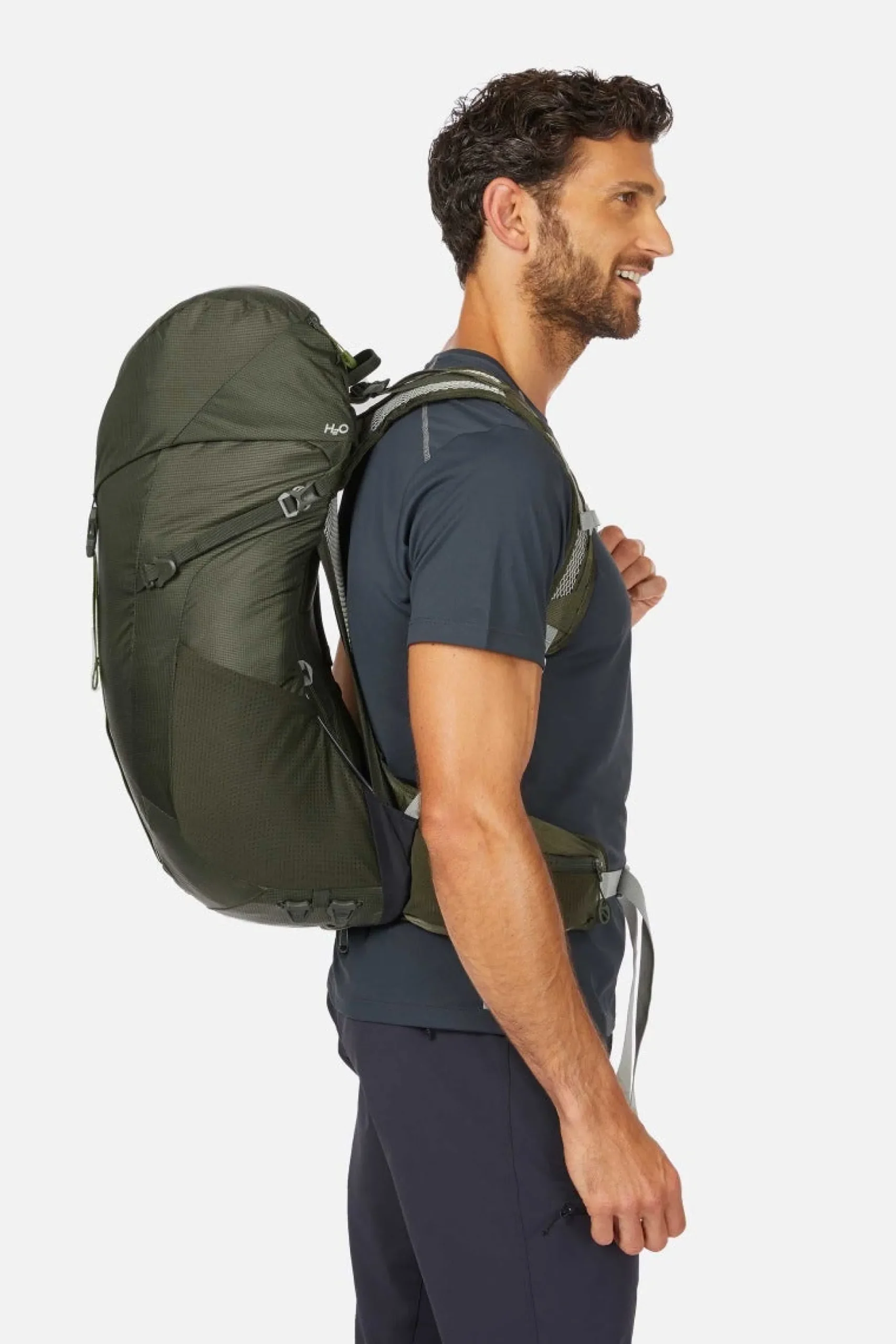 Das strapazierfähige Außenmaterial ist zu 50 % recycelt und mit einer fluorcarbonfreien DWR-Beschichtung imprägniert, sodass der schlanke Rucksack strapazierfähig und perfekt für kilometerlange Wanderungen in der Sommersonne ist.