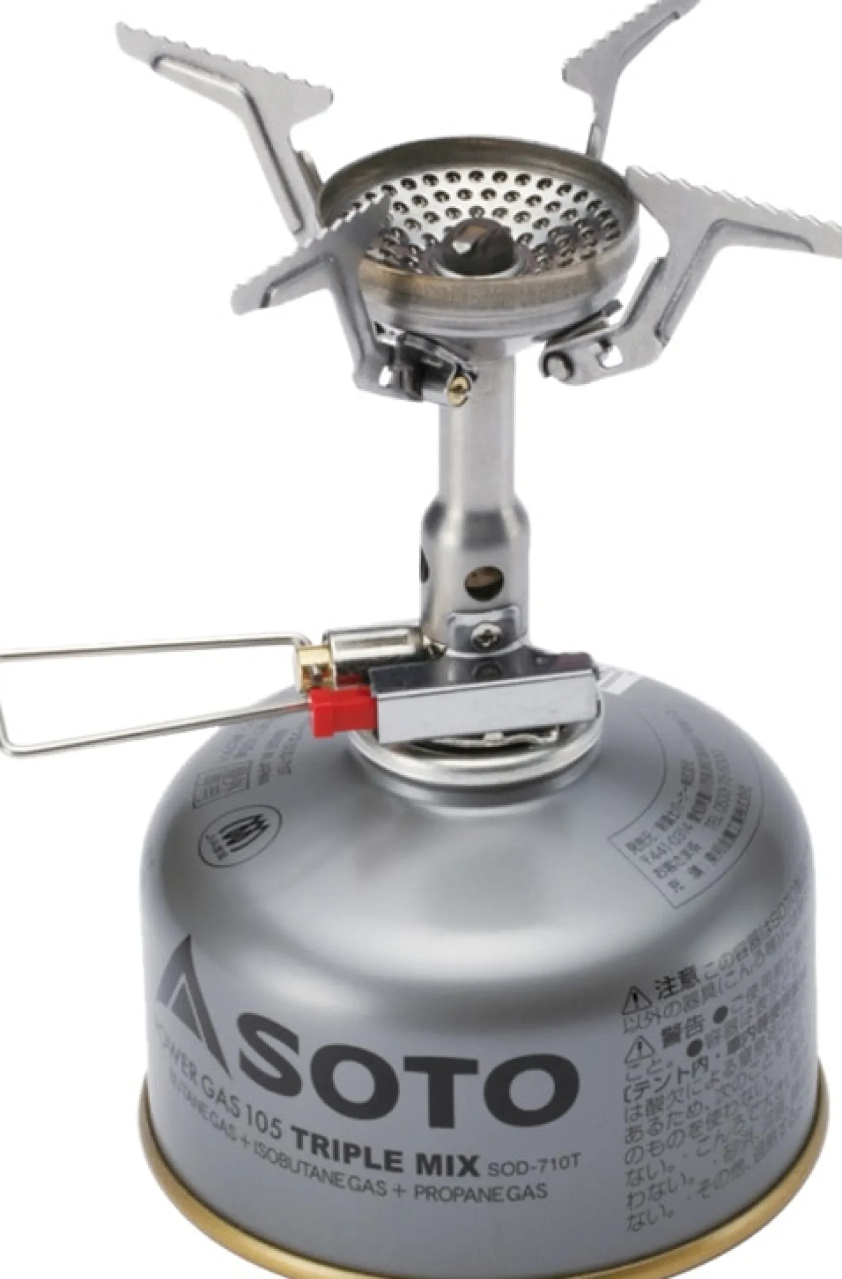 Der Amicus Gaskocher von Soto ist superleicht, extrem klein verpackbar und dennoch sehr leicht verpackbar. Vier ausfaltbare Topfauflagen sorgen für einen guten Stand. Dank Piezo-Zündung ist der Kocher mit einem Knopfdruck entzündet.