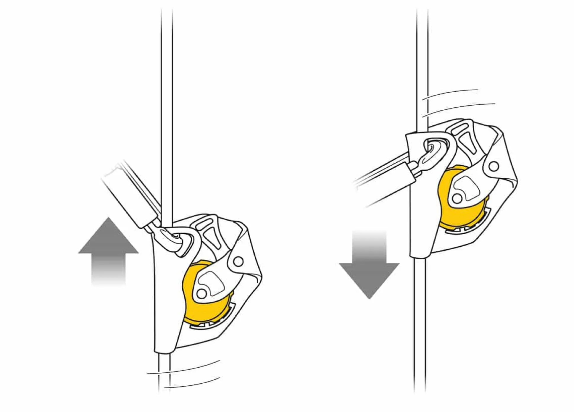 – Funktioniert an vertikalen oder geneigten Seilen.