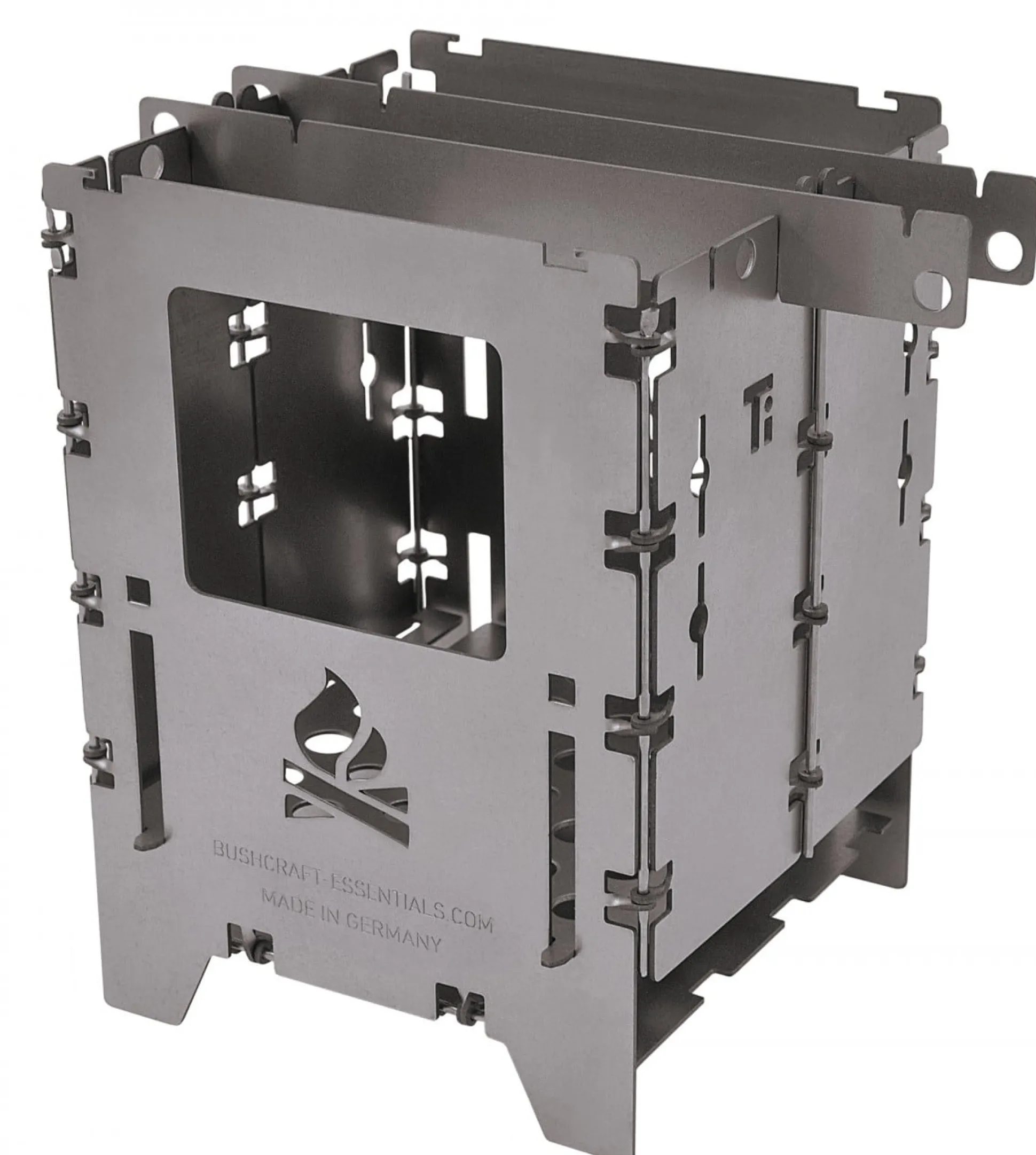 Durch das geniale Faltsystem mit den tollen Scharnieren lässt sich der Kocher schön klein verstauen und schön leicht ist er durch das Titanmaterial auch! Ohne Tasche bringt die Bushbox Titan 280 g auf die Waage. Die Fertigung erfolgt in Deutschland.