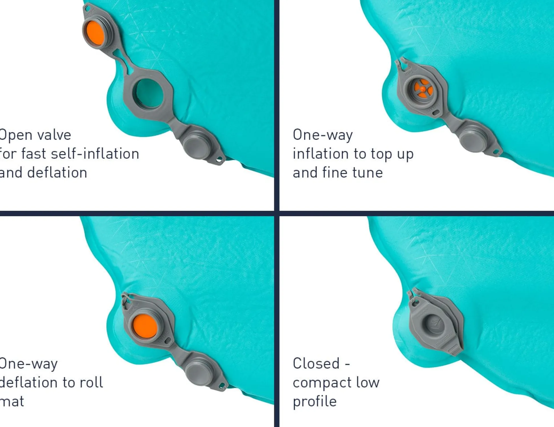 Dank großem Ventil ist die Matte schnell gefüllt und ebenso schnell wieder zusammengepackt. Das Multi-Function S.I. Ventil unterstützt dich dabei. Kissen mit Pillow Lock™ System von Sea to Summit passen hier.