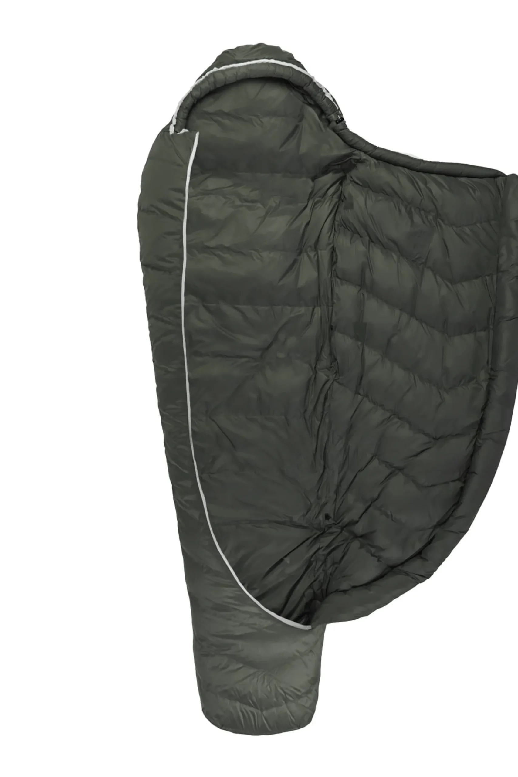 Der Zwei-Wege-Reißverschluss mit breiter Abdeckung verhindert Wärmebrücken und wenn deine Füße Frischluft brauchen, kannst du den Reißverschluss unten ein Stück öffnen. Durch die Form des Zippers liegen die Füße dann bequem auf dem Schlafsack, wenn du sie aus dem Schlafsack holst. Der Reißverschluss ist durch seine weiße Farbe in der Dunkelheit besser sichtbar.