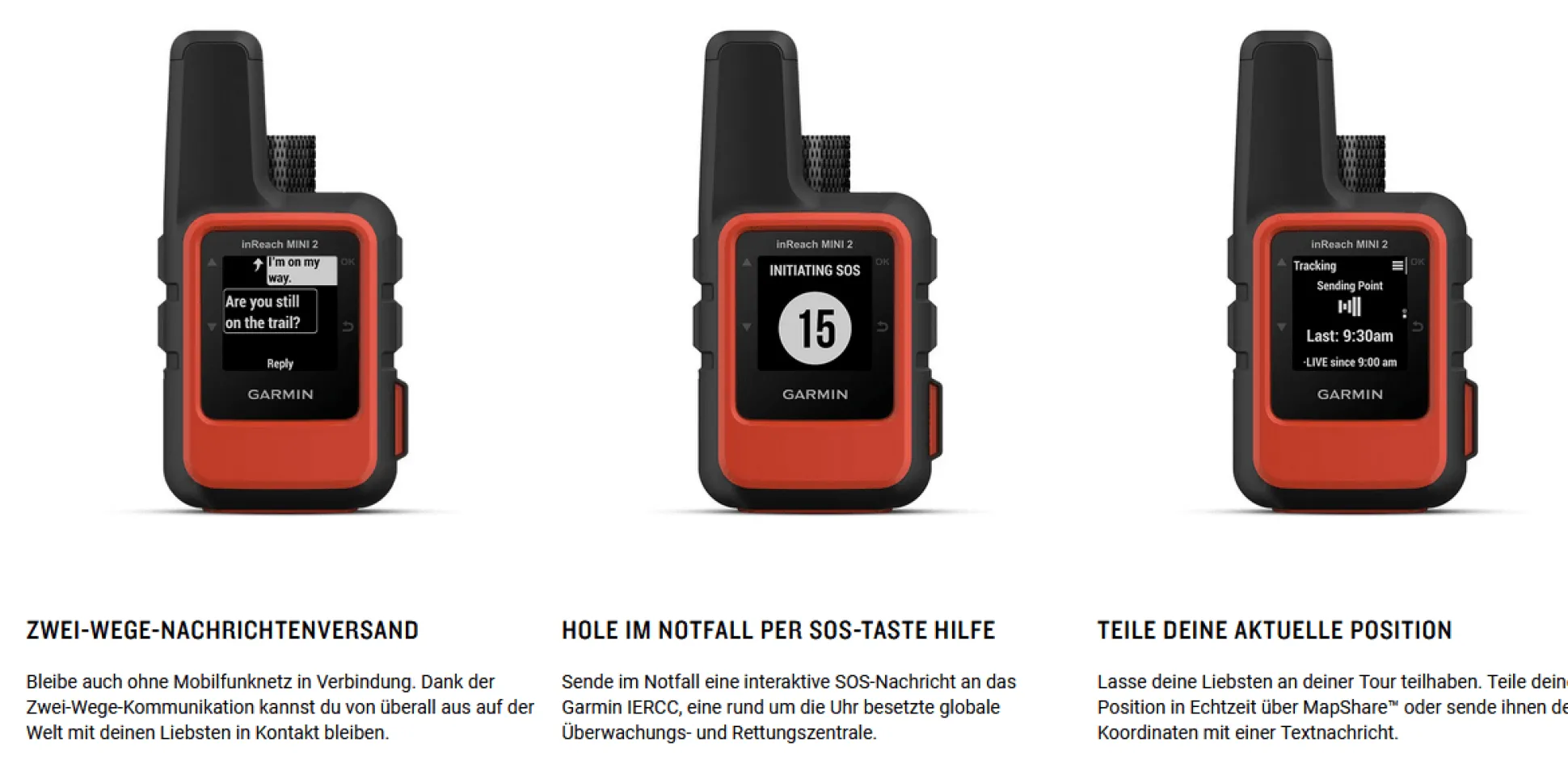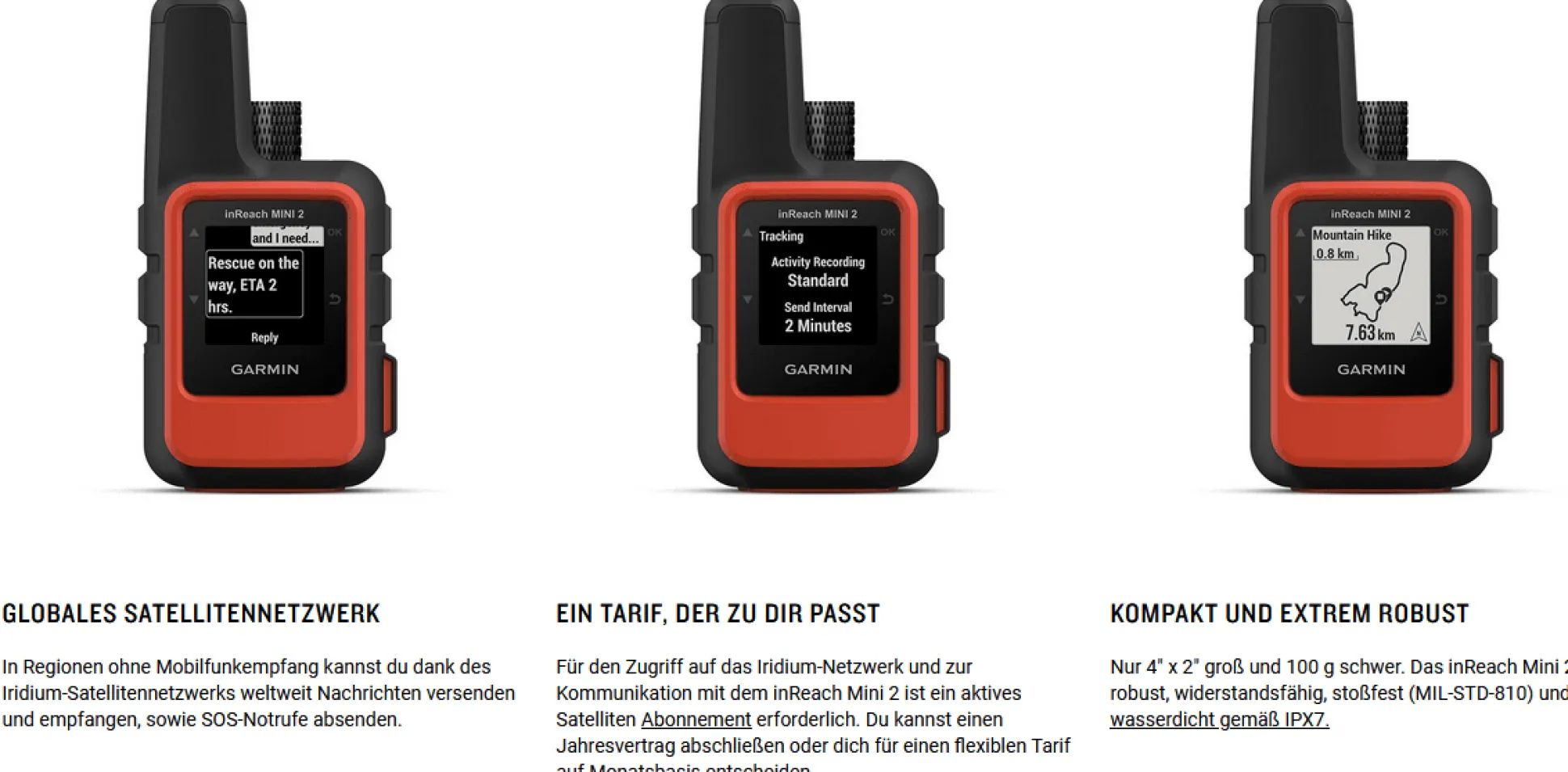 Beachte: für alle Notfallfunktionen sowie die Kommunikationsmöglichkeiten über das inReach Mini 2 benötigst du ggf. ein Abonnement – was separat vom Kauf des Gerätes erworben und freigeschaltet werden muss.