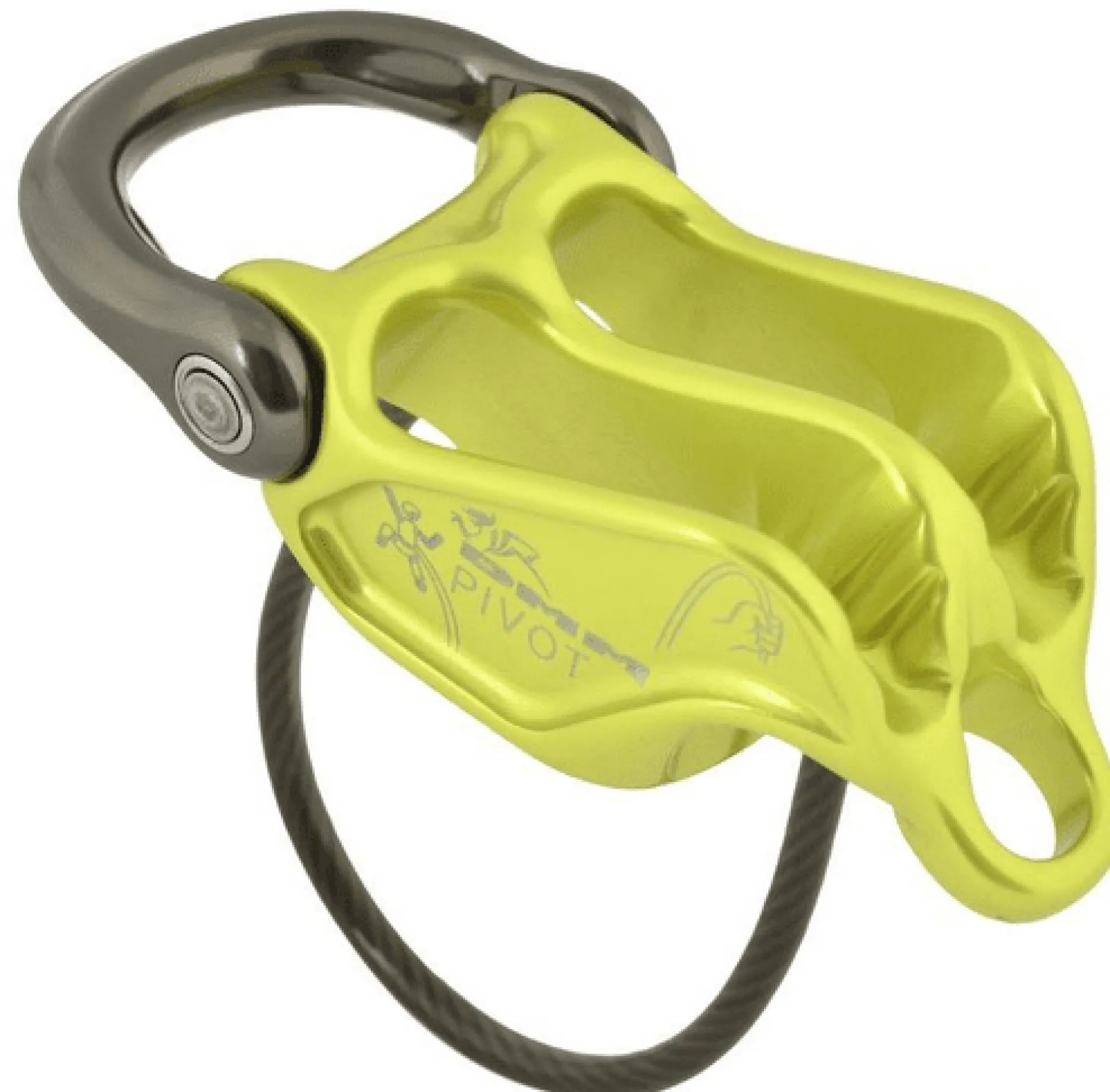 Bei der Nachsicherfunktion kommt die Pivotfunktion des Sicherungsgerätes zum Tragen: die Aufhängung des Gerätes am Stand ist beweglich gehalten – anders als bei allen anderen Alpintubern. Damit wird das Ausgeben von Seil oder das Ablassen des Nachsteigers erleichtert. Du kannst hier die Blockierung leicht lösen – eine vierte Öse dafür ist auch vorhanden – und das Ablassen funktioniert sehr gut.