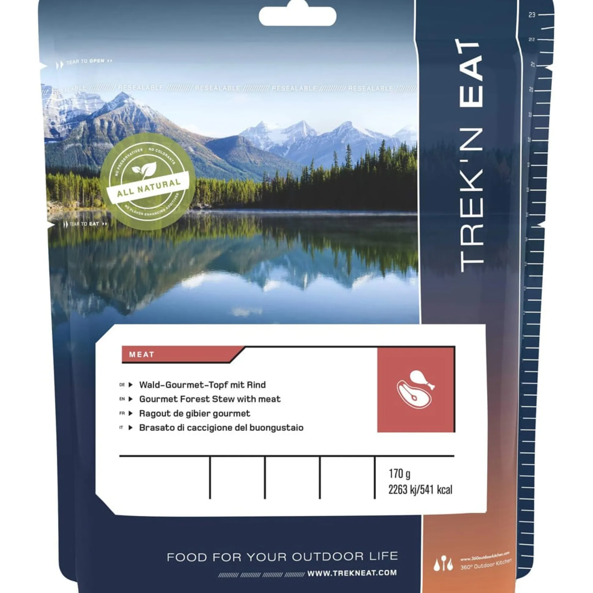 Trek’n Eat hat mit mit der Trekkingmahlzeit Wald-Gourmet-Topf mit Rind was für Feinschmecker in der Tüte. Lecker kräftiges Rindfleisch in Kombination mit Champignons und Zwiebeln wird mit Nudeln vervollständigt, die für ausreichende Kohlenhydrate sorgen.
