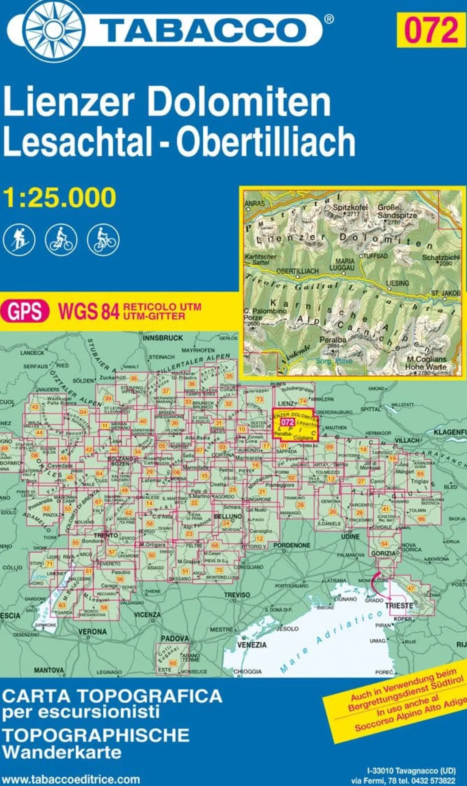 Der Verlag Tabacco möchte Ihnen diese Karte im Maßstab 1:25.000 in einem neuen Format anbieten, das handlicher, widerstandsfähiger und biologisch abbaubar ist und mit erheblichen Einsparungen an Energie und CO²-Emissionen in die Atmosphäre hergestellt wird.