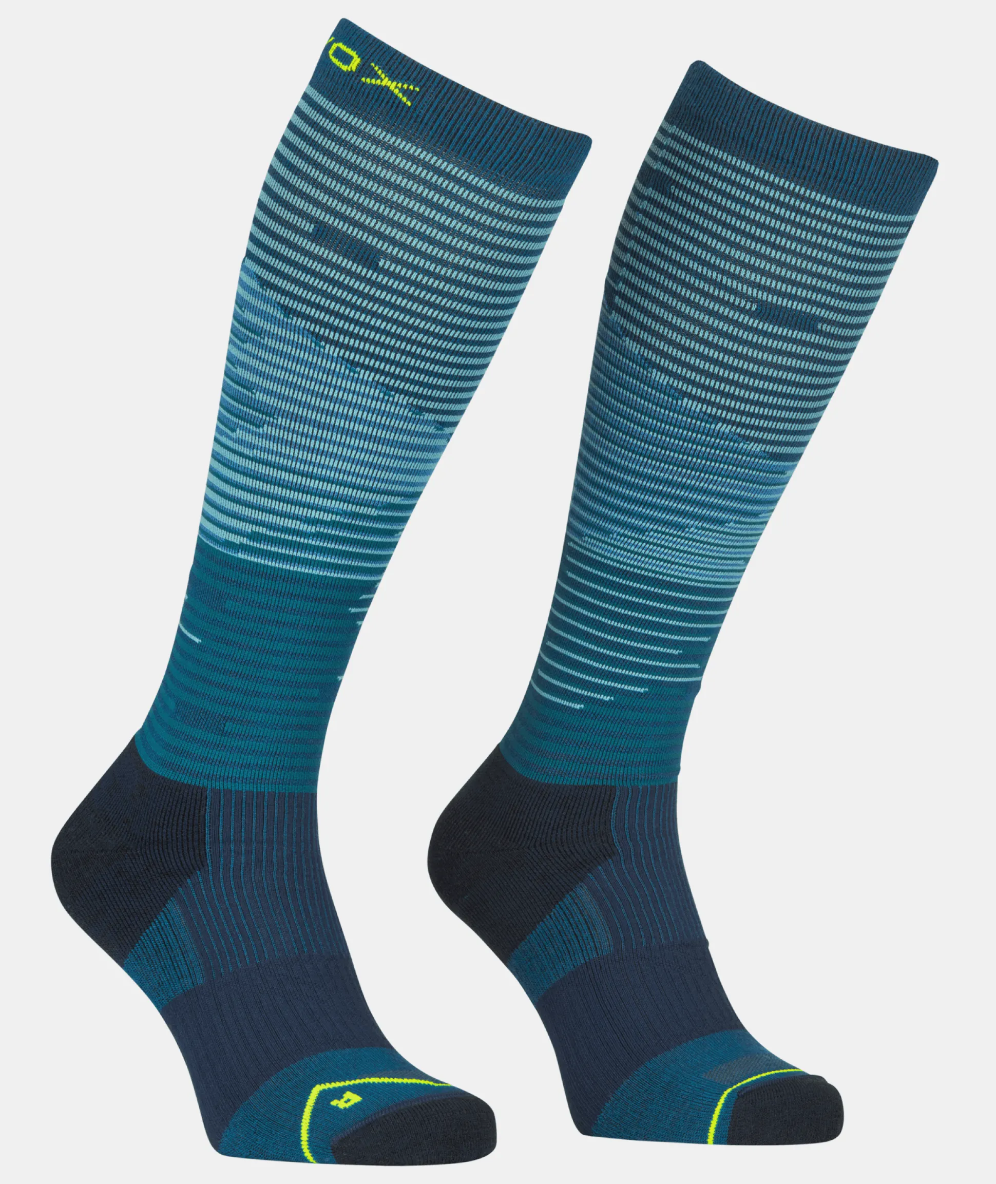 Ein komfortabler Bund, die ergonomisch Passform sowie die Knöchel- und Gewölbeunterstützung sorgen selbst in schweren Wander- oder Hochtourenschuhen für einen angenehmen, falten- und rutschfreien Sitz. Ein gepolsterter Fersen- und Zehenbereich macht den Kniestrumpf langlebig und dämpft kleine Stöße beim Bergauf- und Bergabgehen.