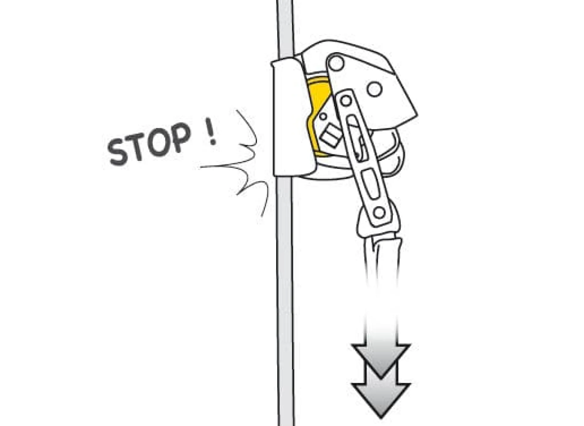– Blockiert bei Stürzen, Abrutschen und unkontrollierten Abseilfahrten.