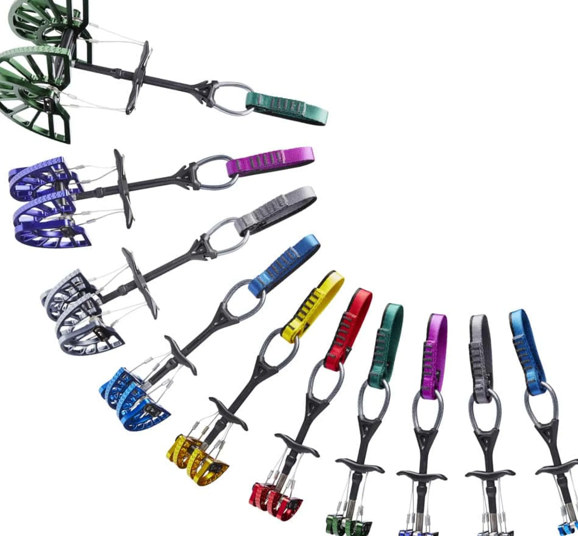 Was bewährt ist bleibt natürlich, wie Klemmwinkel, doppelachsige Bauweise und die Bauweise des ergonomischen Triggers. Die C4s von Black Diamond sind Klemmgeräte höchster Qualität. Die Camalots sind durch Doppelachskonstruktion sehr variabel in der Rissweite. Sogar die größten Cams lassen sich bequem mit drei Fingern bedienen und sauber setzen. Die Farbcodierung lässt dich gleich die richtige Größe greifen. Es gibt auch entsprechend farbcodierte Karabiner von Black Diamond (separat erhältlich).