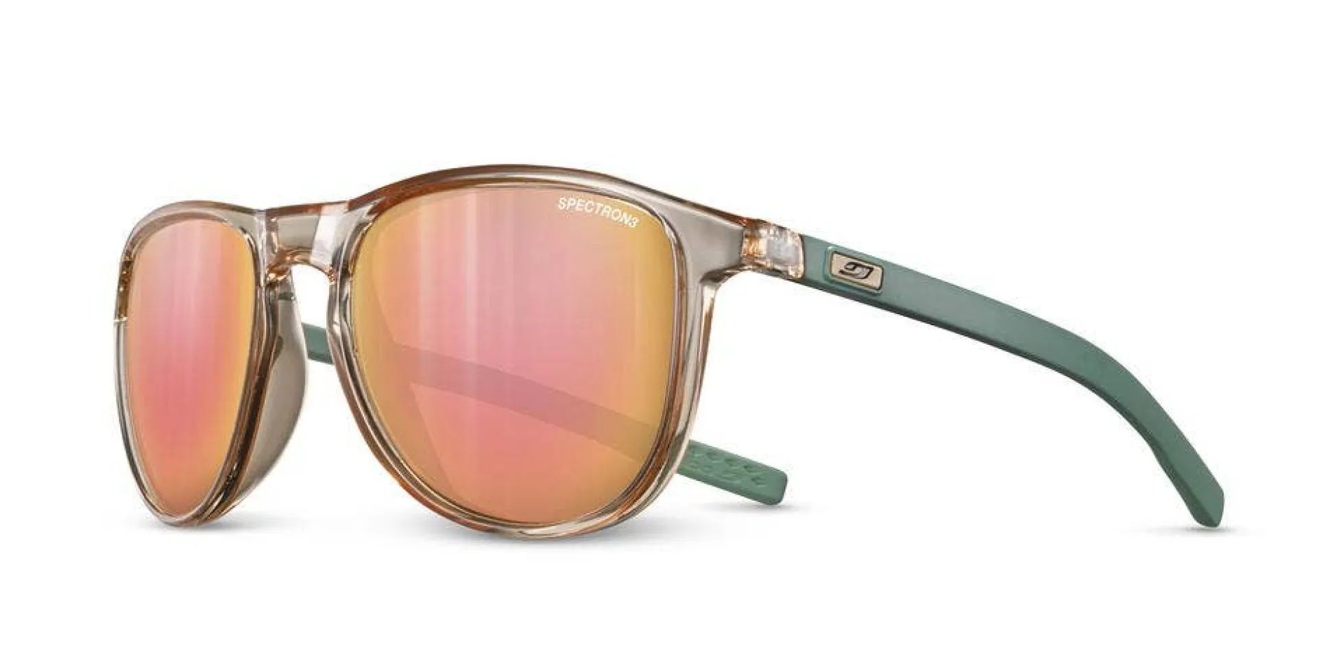 Polycarbonatglas der Kategorie 3 (Übertragungsrate des sichtbaren Lichts: 12%) mit farbiger Verspiegelung (Color-Flash): verstärkt die Filterleistung von sichtbarem Licht durch einen Spiegeleffekt auf dem Glas. Es ist vielseitig einsetzbar.