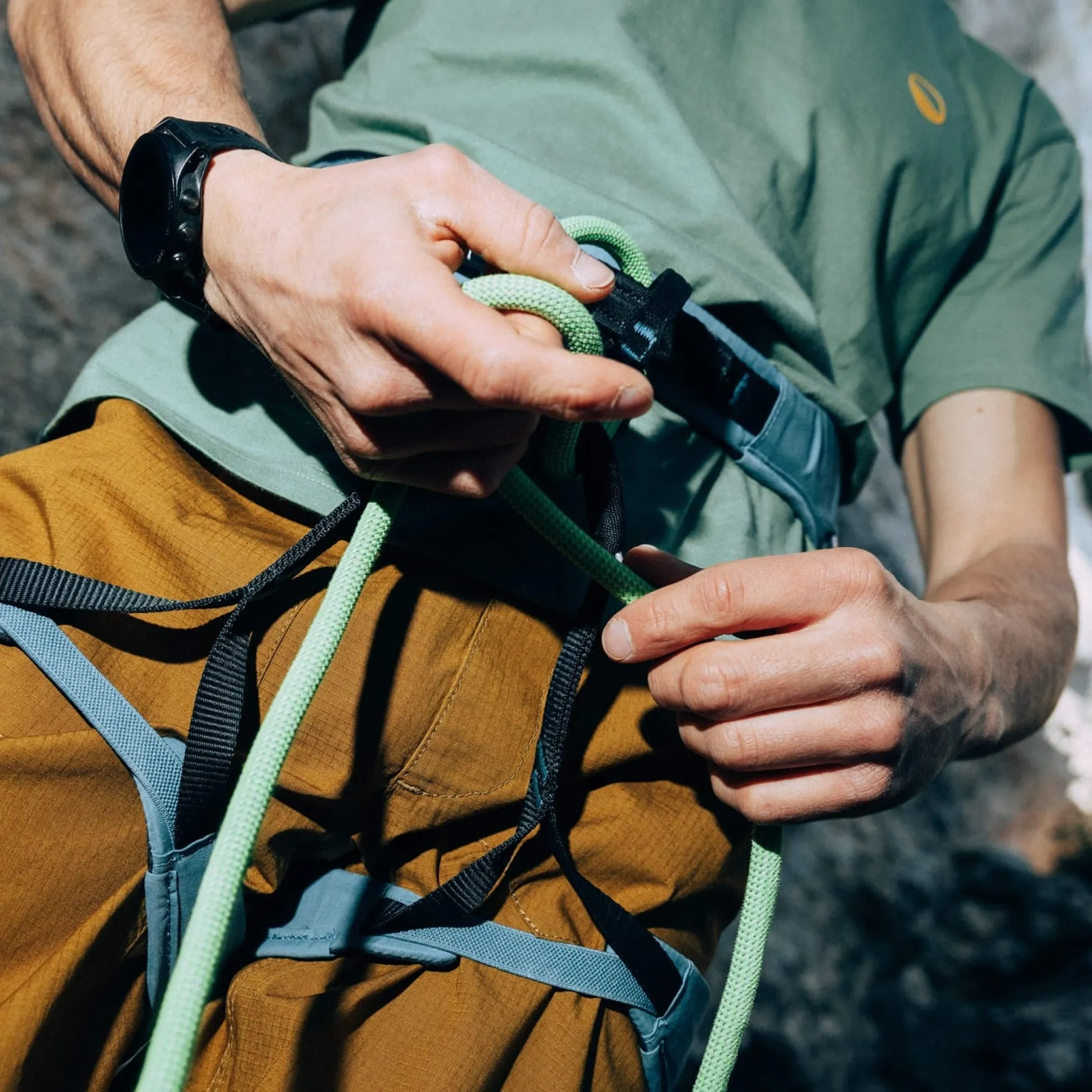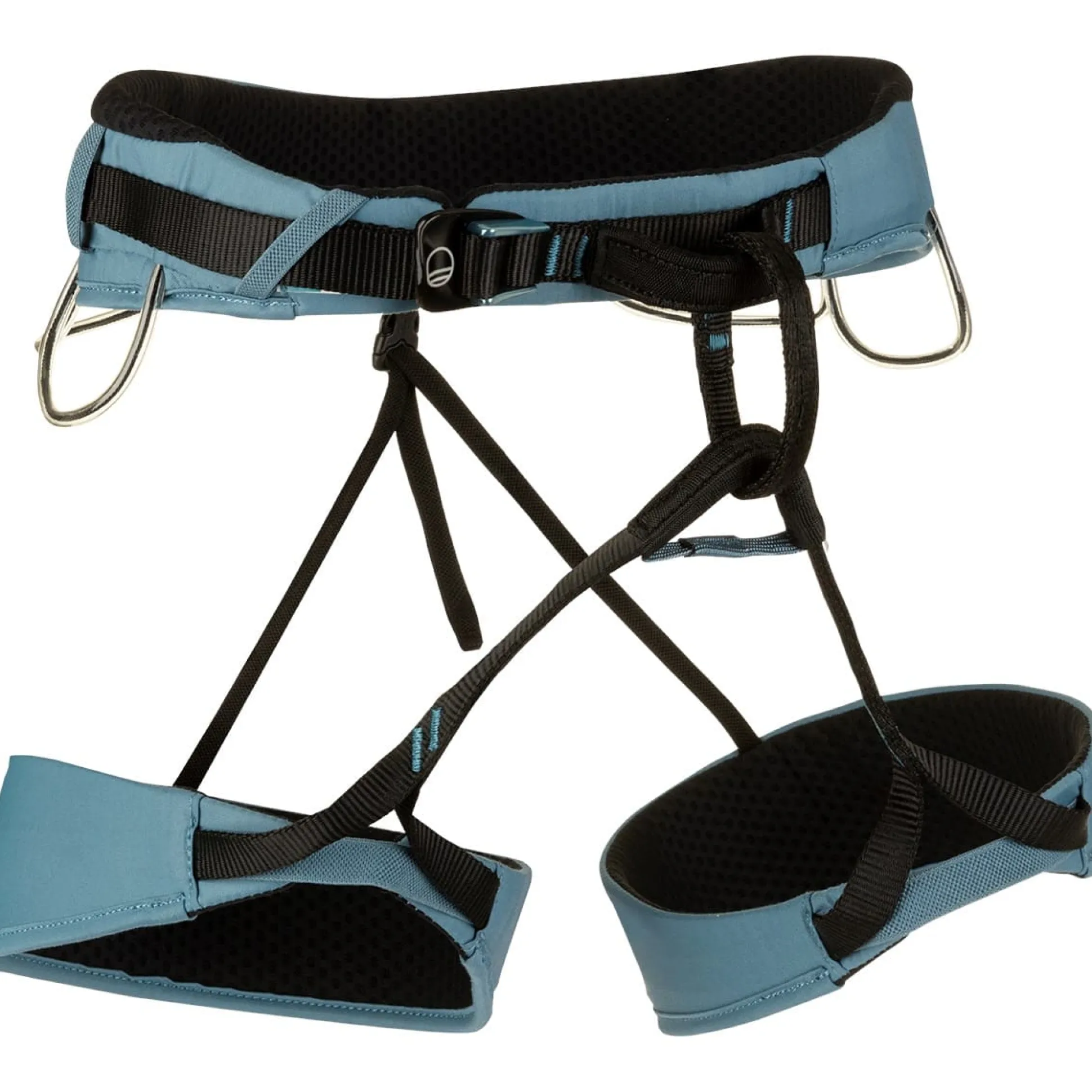 Die Konstruktion des Klettergurts sorgt dafür, dass die Belastung gleichmäßig auf dem unteren Rücken verteilt wird, um Druckstellen vorzubeugen. Das weiche Gurtband und die luftdurchlässige Polsterung sind mit einem komfortablen Innenfutter aus Mesh-Gewebe ausgestattet. Der Flow kommt mit einer leichtgängigen, verstellbaren Schnalle, fixen Beinschlaufen und einem abriebfesten unteren Einbindepunkt mit Verschleißanzeige für zusätzliche Sicherheit.