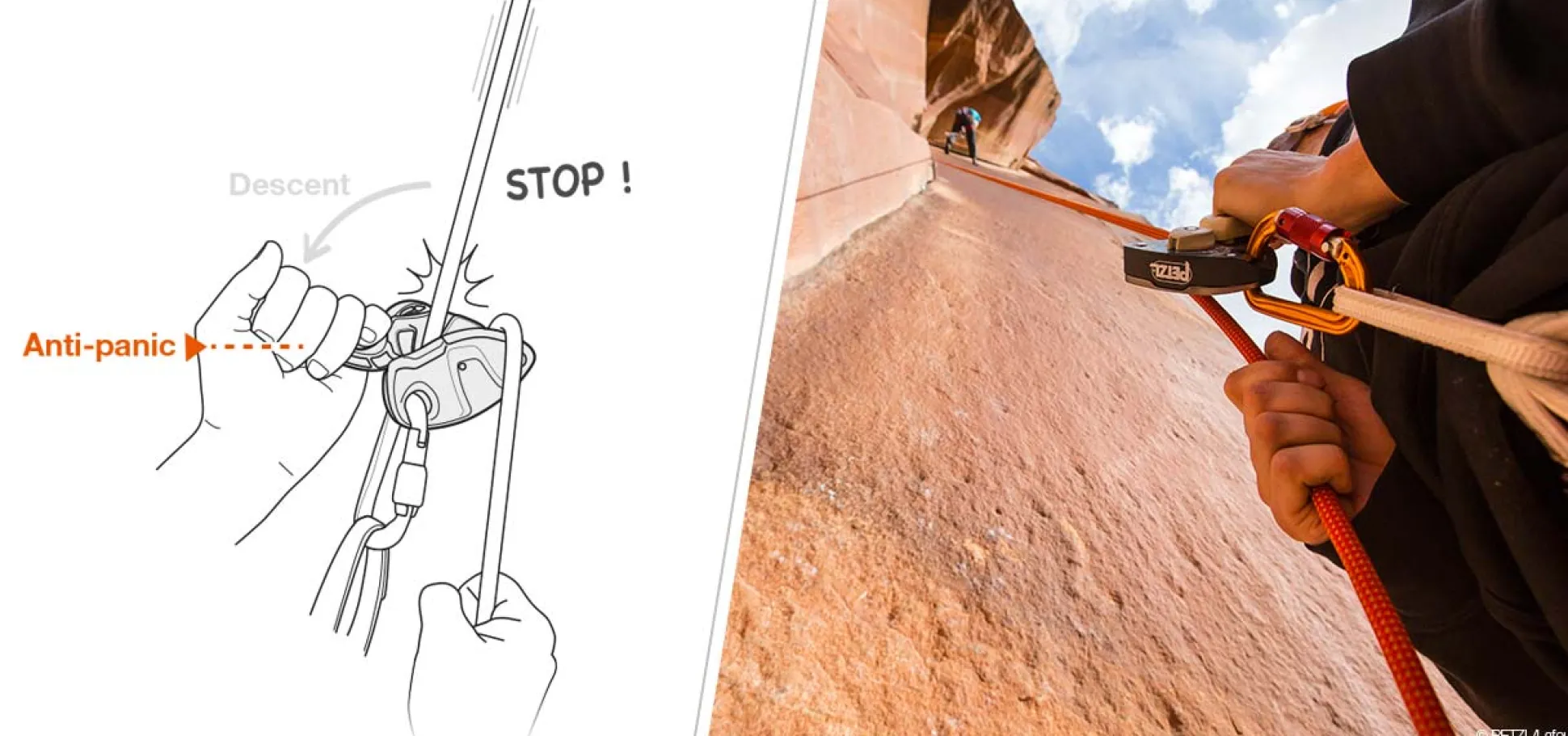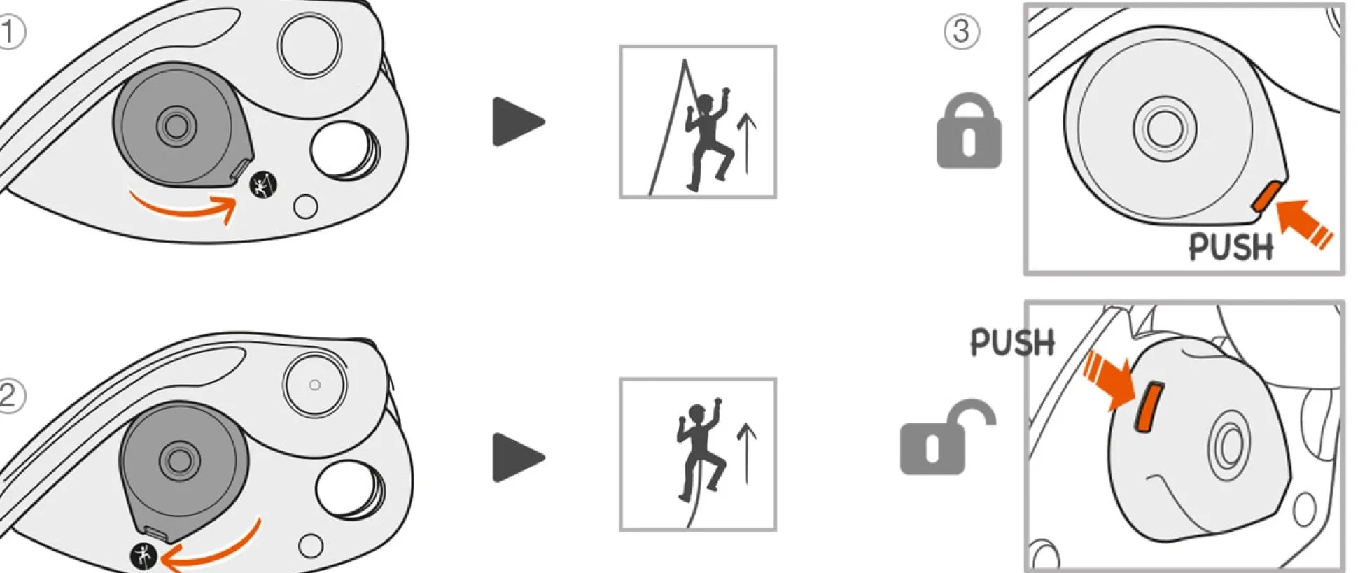 Lies unbedingt die Bedienungsanleitung und beachte das Verhalten des Grigri + mit unterschiedlichen Seilen und bei unterschiedlichen Bedingungen und befasse dich mit dem Thema Seilausgeben.