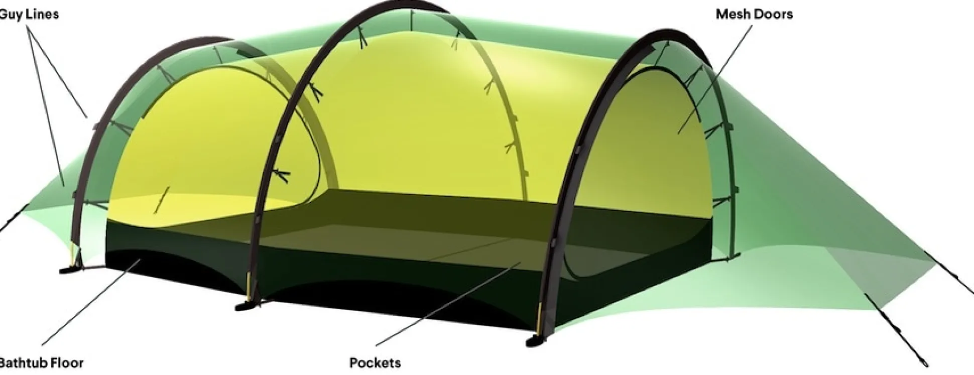 - Eine Tunnelkonstruktion bietet das beste Raum/Gewichts-Verhältnis und eignet sich besonders für Reisetouren.