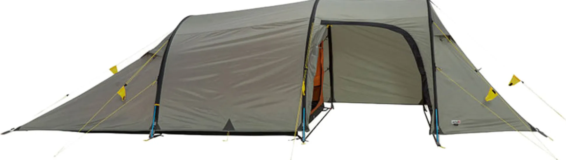 Die Apsis besitzt einen Seiteneingang und eine aufrollbare Frontöffnung, die bei geschlossener Seitentür einen exzellenten Wind- und Wetterschutz bietet. Die vier Apex Lüfter am Außenzelt sorgen für bestmögliche Ventilation.