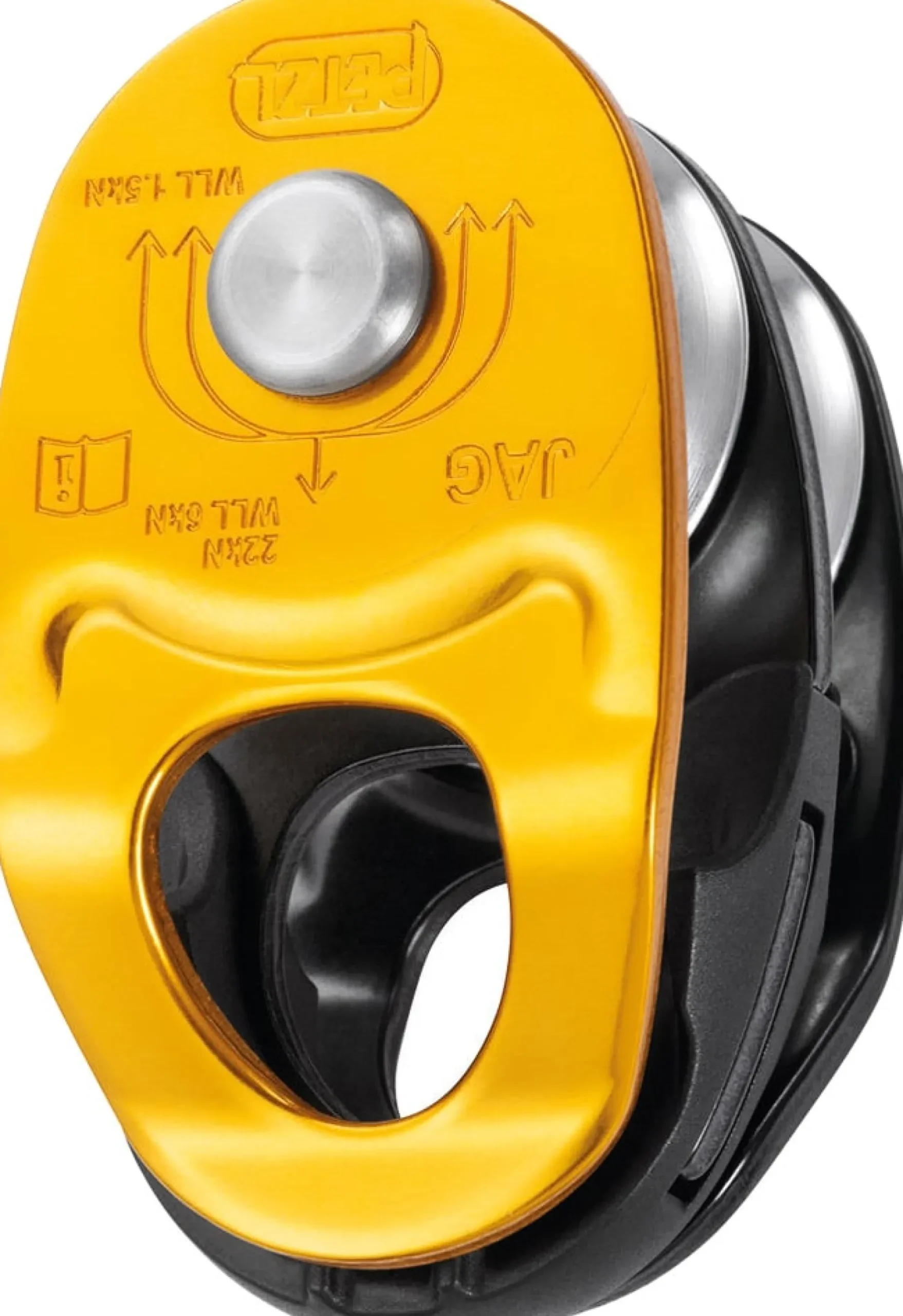 Das Jag von Petzl ist eine zweifache Umlenkrolle die durch gekapselte Kugellager einen schön hohen Wirkungsgrad aufweist. Zusammen mit der separat erhältlichen Jag Traxion (doppelte Umlenkrolle mit Rücklaufsperre) kannst du dir einen 4:1 Flaschenzug aufbauen.