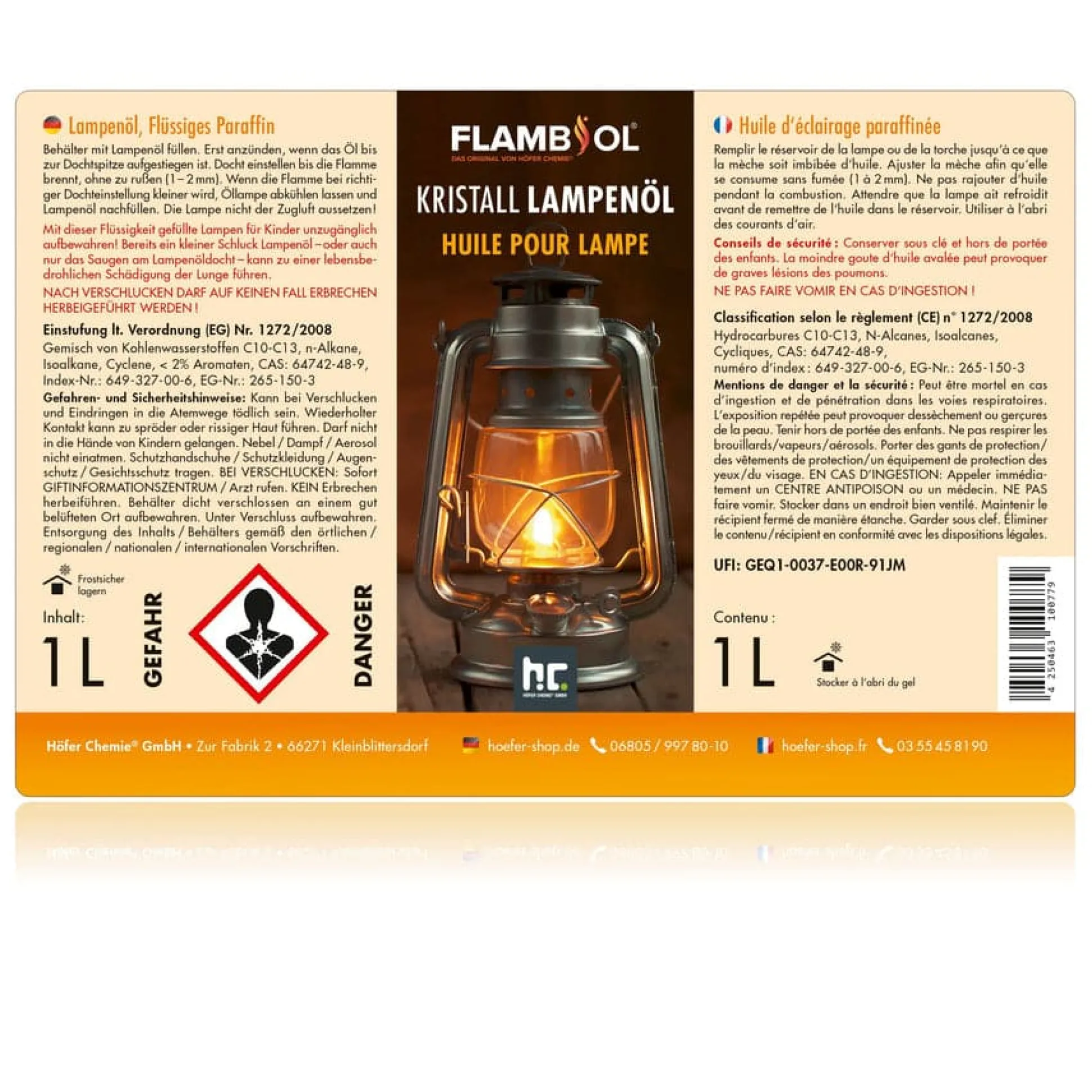 1 L FLAMBIOL® Lampenöl Hochrein Kristallklares Öl für eine saubere Flamme