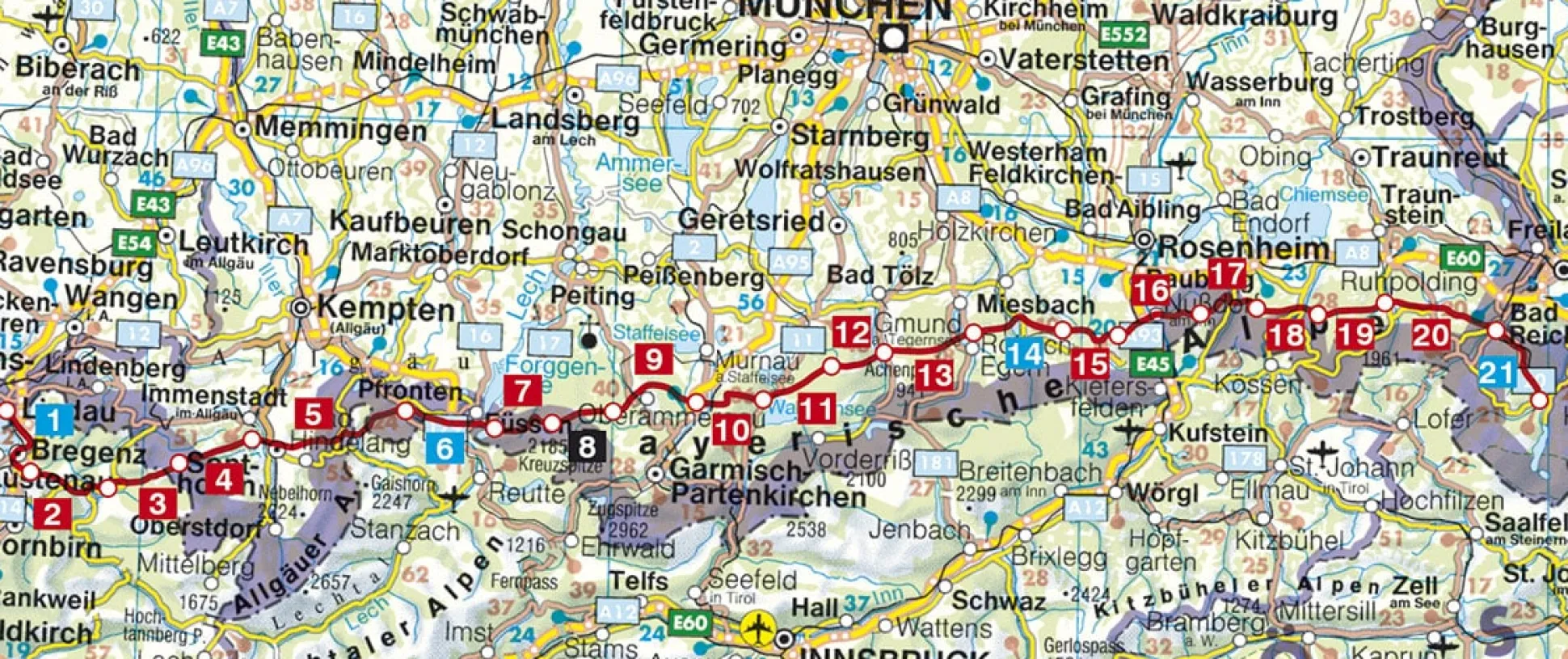 Der Maximiliansweg bietet sich als Fernwanderweg auch für alpine Einsteiger an: Die Höhenmeter sind für halbwegs trainierte Bergfreunde machbar, die Wege sind gut beschildert, kaum einmal ausgesetzt und meist bereits ab Ende Mai begehbar. Auch die Hütteninfrastruktur stimmt, zudem lassen sich die einzelnen Etappenorte mit öffentlichen Verkehrsmitteln gut erreichen. Auch wer den Maximiliansweg in einzelnen Wochen- oder Wochenendtouren entdecken will, findet in diesem Wanderführer Anregungen und Tipps für die lohnendsten Kombinationen.