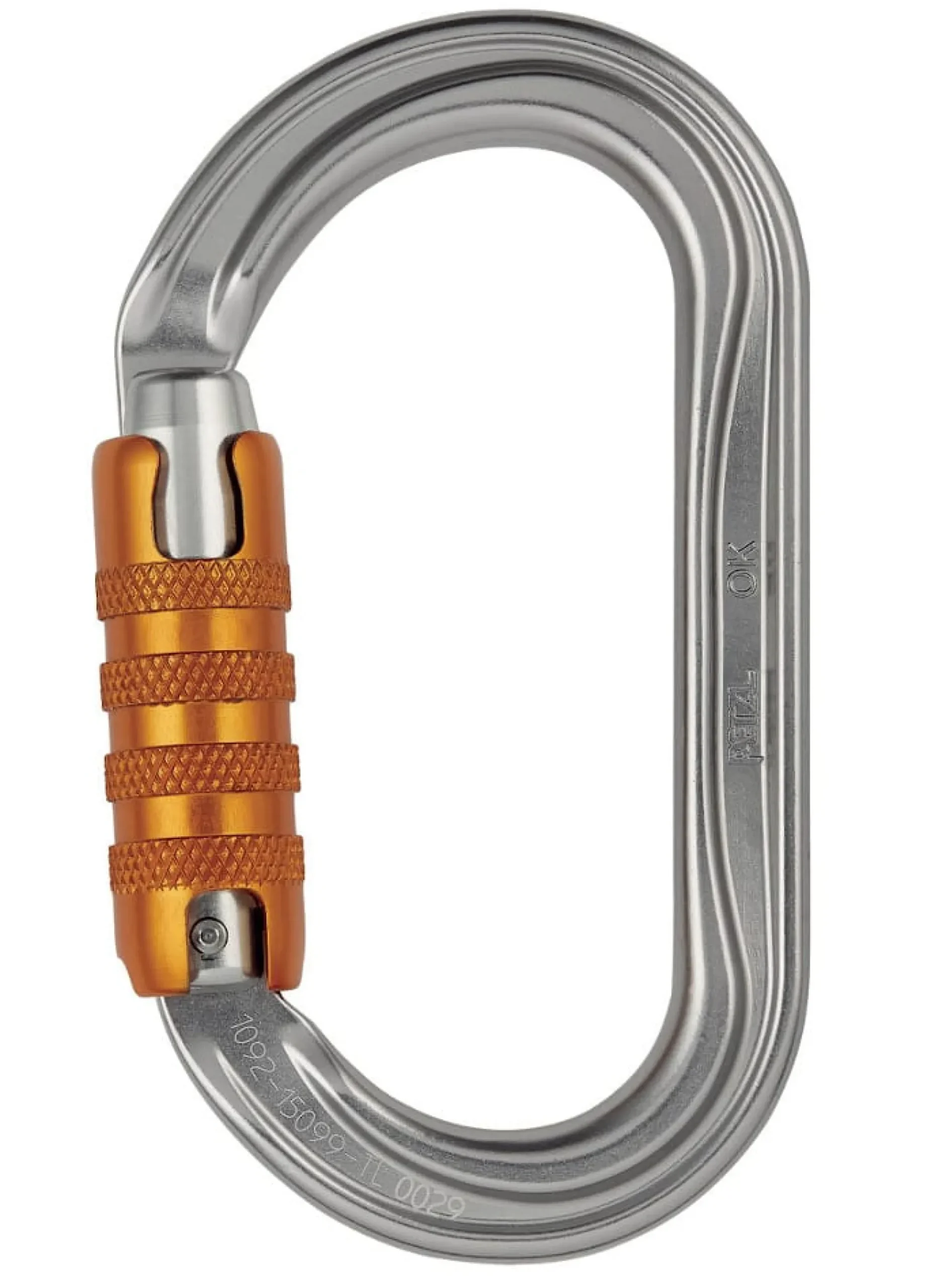 Der Petzl OK-Karabiner ist ein ovaler Verriegelungskarabiner. Hier als TRIACT-LOCK Version.