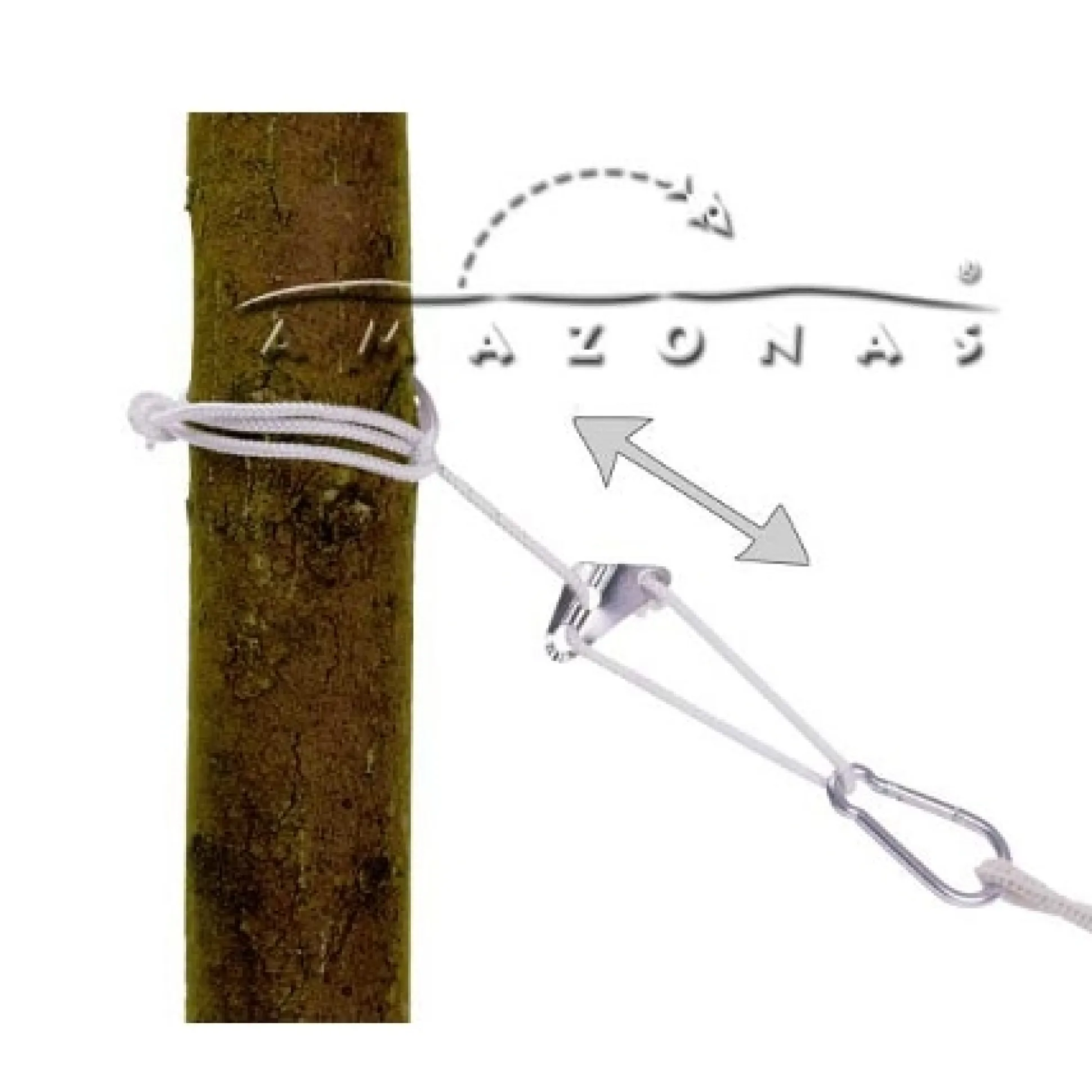 Wetterfestes, verstellbares Seil mit Karabinerhaken. Für die Hängematte braucht man zwei, für den Hängesessel ein Smartrope.