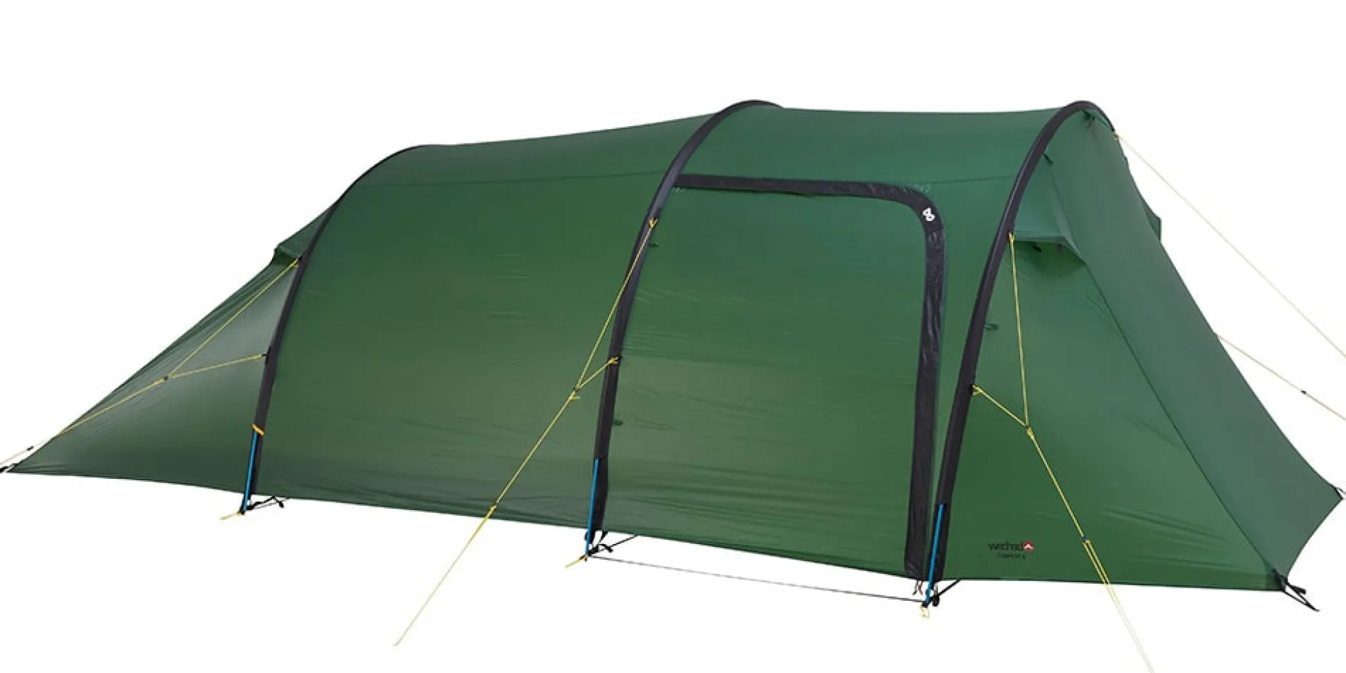 Dank der steilen Form der Apsis können bis zu drei Personen bequem darunter sitzen und die Fläche optimal nutzen. Für noch mehr Raum lässt sich das Innenzelt komplett ein- oder aushängen. Die Belüftung erfolgt über einen D-förmigen Innenzelteingang mit Moskitonetz sowie drei Apex-Lüfter am Außenzelt, die für eine optimale Ventilation sorgen.