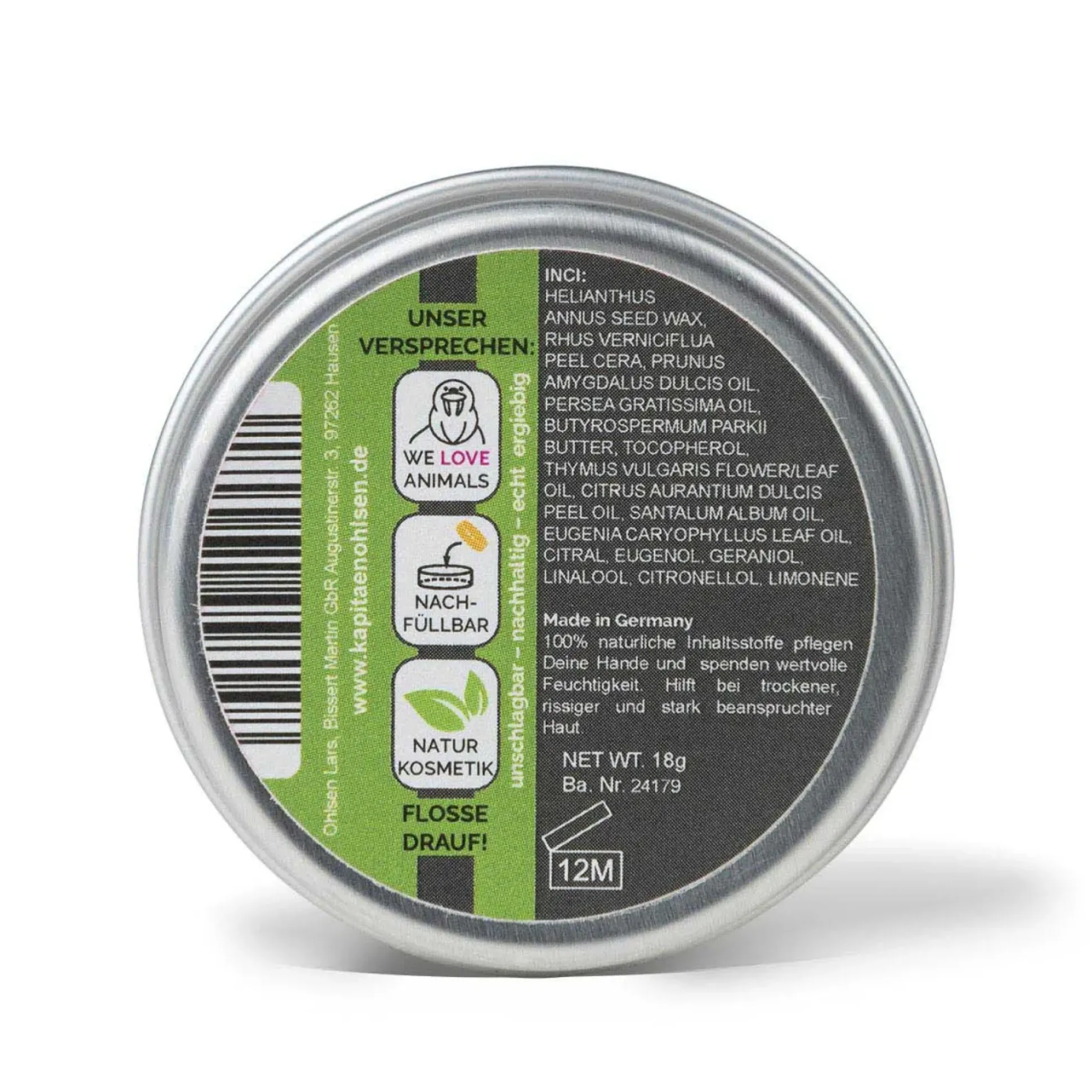 Das vegane Vlossen-Vett von Kapitän Ohlsen pflegt geschundene Kletterhände, hilft aber auch bei einfach trockener Haut vom Arbeiten malträtierten Pfoten oder Wassersportlern. Nimm den Cremebatzen in die Hand und verreibe diesen zwischen den Händen. Klettermenschen können natürlich speziell die Fingerspitzen pflegen wenn es dort mal wieder rosa ausschaut. Das Pflegemittel zieht schnell ein und du brauchst wirklich nur wenig zur Pflege der Hände.