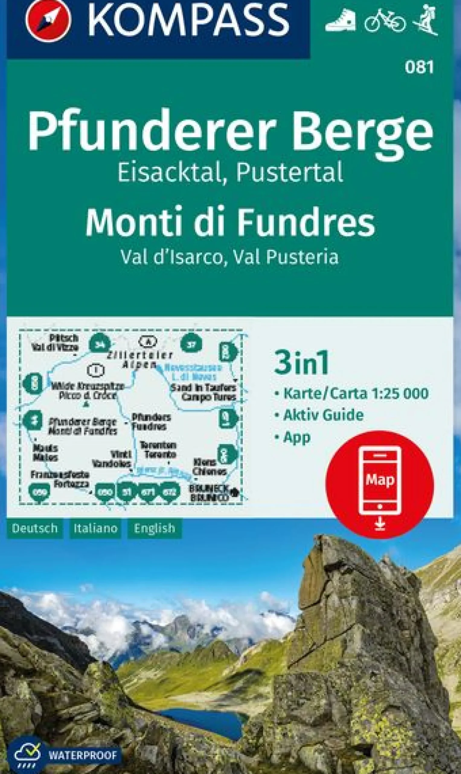 3in1 Wanderkarte 1:25000 mit Aktiv Guide inklusive Karte zur offline Verwendung in der KOMPASS-App. Fahrradfahren. Skitouren.